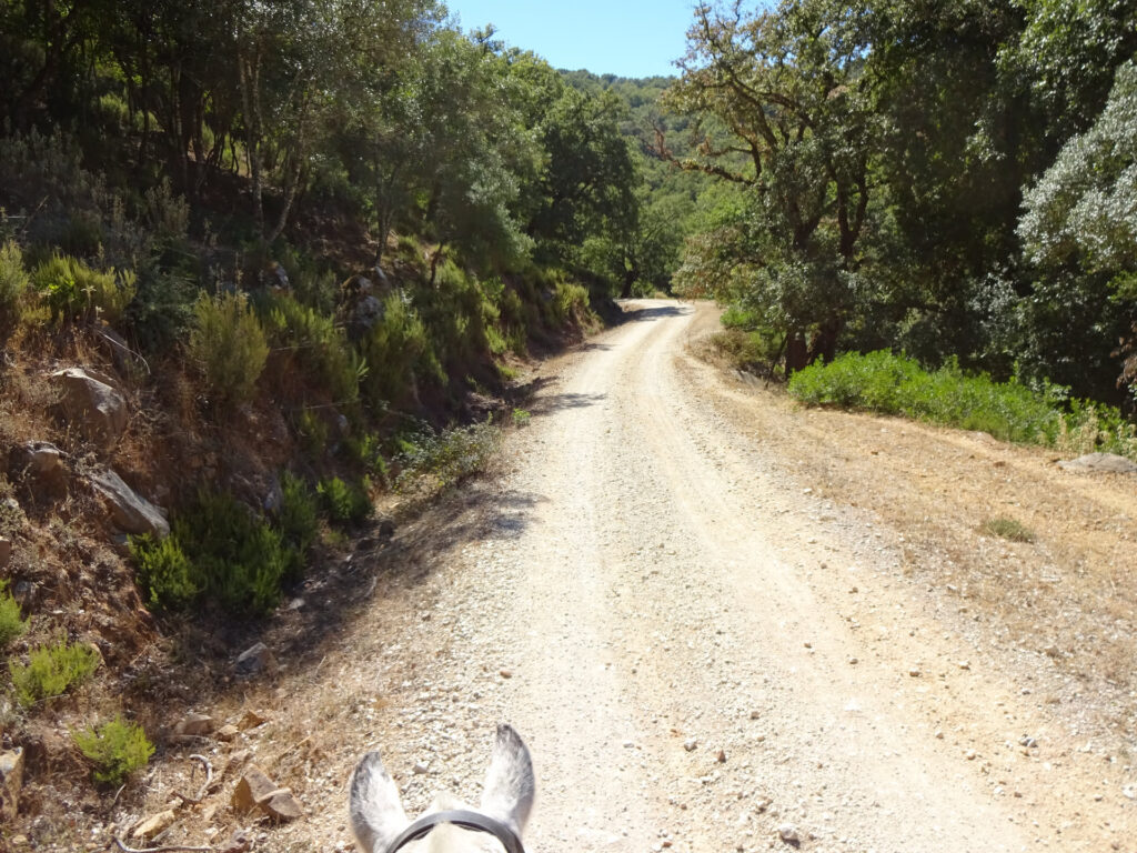denn eigentlich sind wir den kompletten Tag nur durch Korkeichen geritten. Zumal auf Grund des steinigen und bergigen Geländes auch der komplette Tag nur Schritt geritten wurde