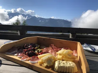 Rast auf der Gruberalm bei Radler und Aussicht