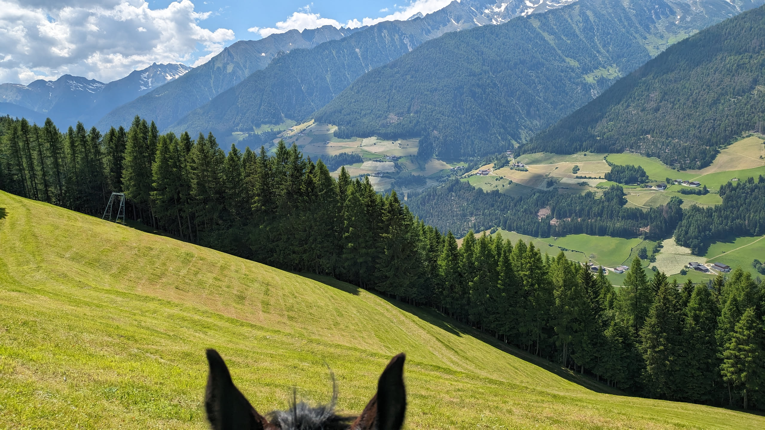 Weiter geht der Wanderritt Südtirol. Diese Etappe führt uns von der Rußbachalm hinunter ins Tal und auf der anderen Seiter wieder hinauf bis zur Schnida Olm