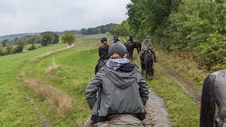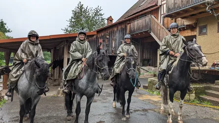 Am nächsten Morgen starteten wir nicht gleich weiter nach Hause. Stattdessen stand noch ein kleines Extra auf dem Programm: ein Abschlussritt mit den Rhönreitern.